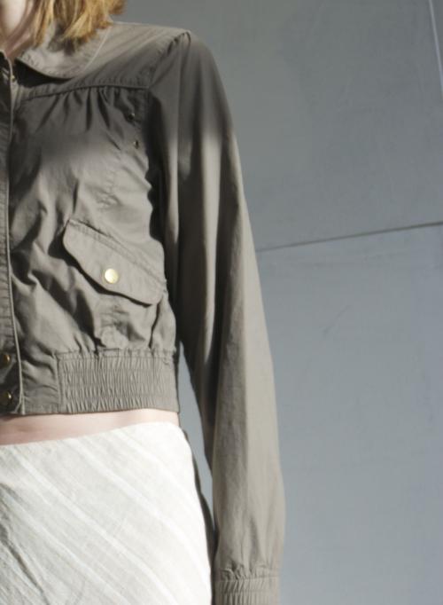GLAM shop Vintage - Military collection - Fitted Military style cute Jackey - Khaki green in colour. elesticated cuff and hem details. 2 front low pockets. zip front fastening with covered panel Erban edition logo on press studs to the front.